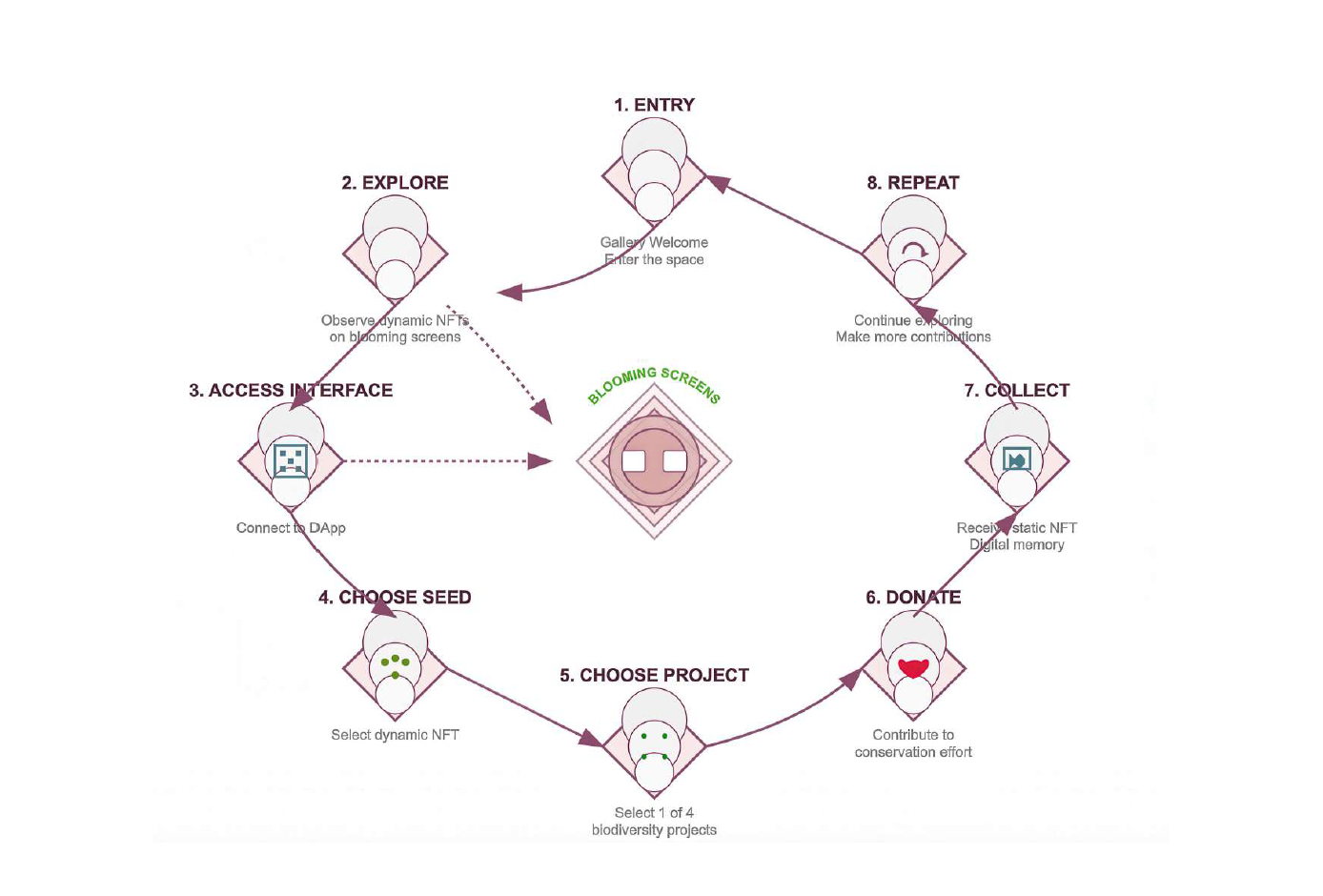 The Way of Flowers offers a fundamental reinterpretation of ecological art by creating a living connection between generative hybrid plant-beings and real-world ecosystem regeneration projects.